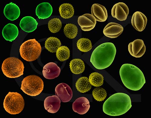 Yukarıdaki şekillerde tabiatta serbest gezinen polenlerin göze hoş gelen resimleri görülüyor.Polenlerin dış yüzeyindeki dikensi yapılara dikkat edin.