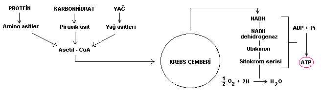 Şekilde, krebs çemberiyle birlikte solunumun en genel hali özetlenmiştir.