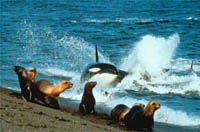 Katil balinanın yakşaltığını gören fok veya deniz aslanı sürüsü çareyi kumsala çıkmakta bulurlar.