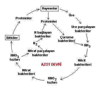 Parçalanan biyolojik artıkların doğaya ne şekilde geri kazandırıldıklarını şemalar eşliğinde teker teker ele alalım. Azot devri :