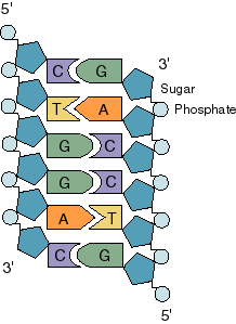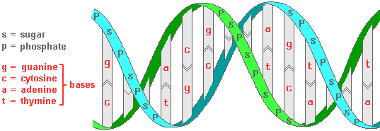 DNA nın yapısı bazların bu şekilde ardı ardına sıralanmasıyla uzayıp gider.Aşağıdaki şekilde ise bazların sıralanışı biraz daha anlaşılır bir şekilde görülmektedir.