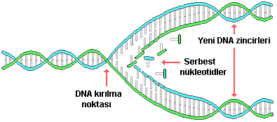DNA nın iki katına çıkması işlemi ise yukarı şekilde gösterilen " Replikasyon " mekanizması ile gerçekleştirlir.
