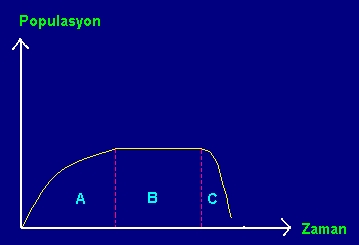 Şekilde bir bakteri kolonisinin, gerekli besin ve uygun şartlar altındaki populasyon - zaman grafiğini görmektesiniz.